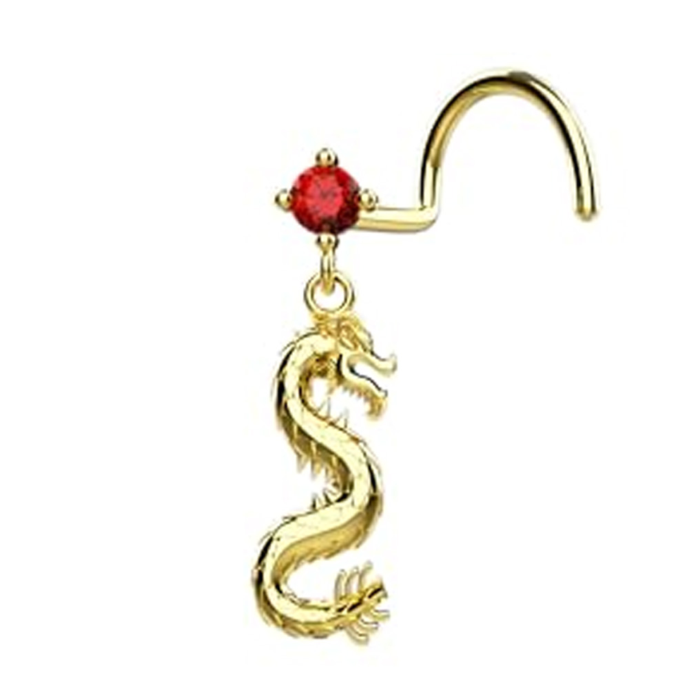 Red Gems Dragon Nose Ring 14k Gold...